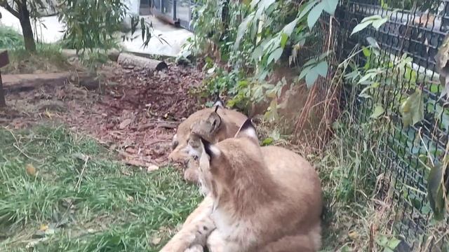 Дикие экзотические животные. Рыси в московском зоопарке. Они тоже умеют дружить.