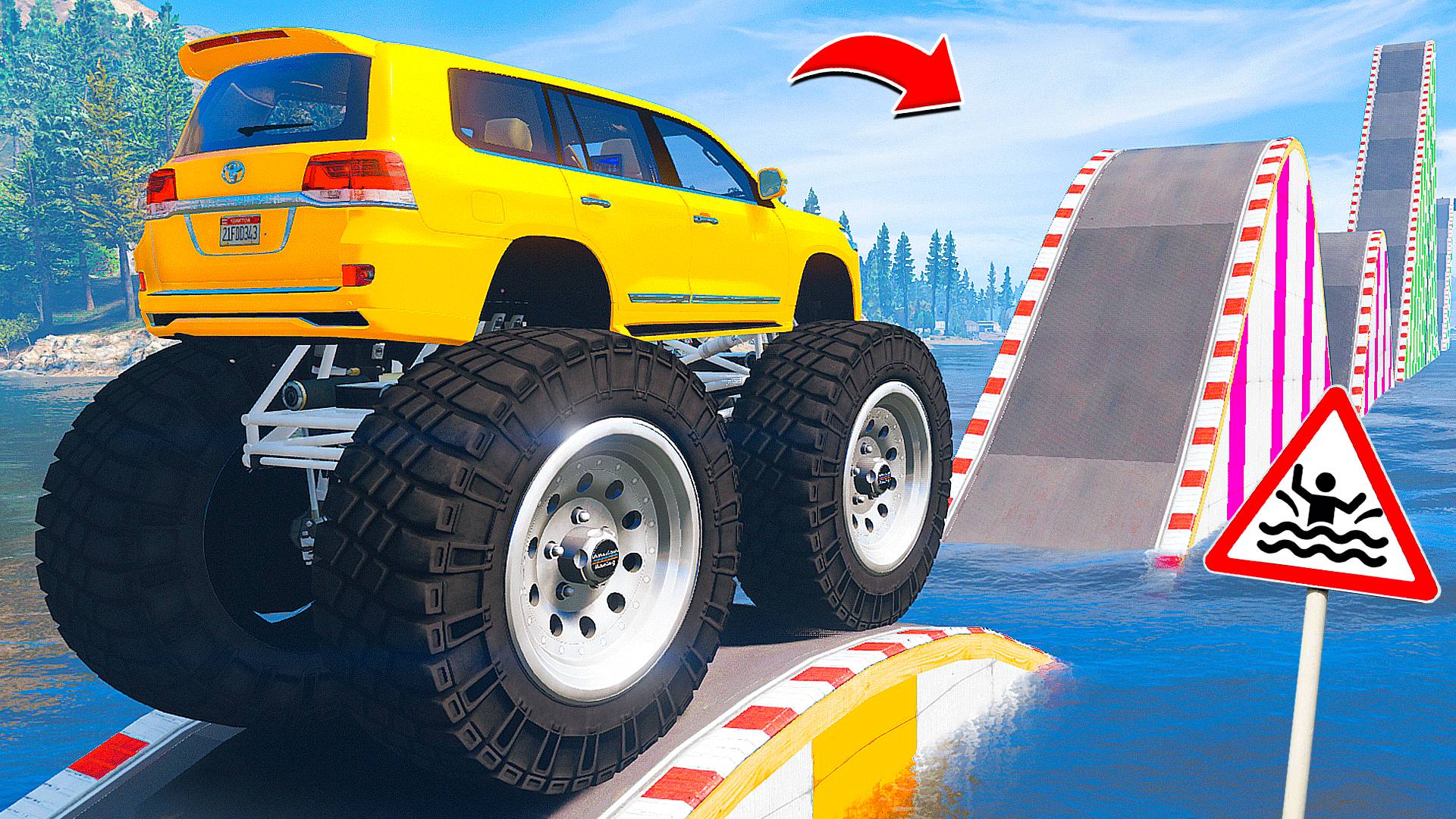 ПРОЕХАЛ ВОДНЫЕ ТРАМПЛИНЫ на ГИГАНТСКОМ КРУЗАКЕ в ГТА 5 МОДЫ - ЭКСПЕРИМЕНТЫ в GTA 5 MODS