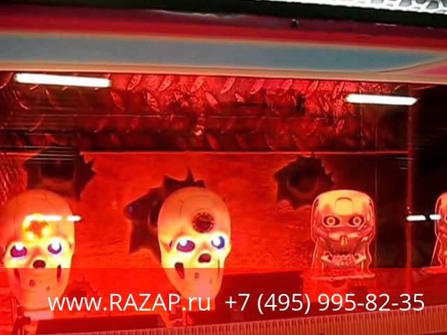 Тир со спецэффектами расcчитан на двух игроков. Необходимо точно стрелять по подсвечивающимся черепкам. Может выдавать призовые билеты.