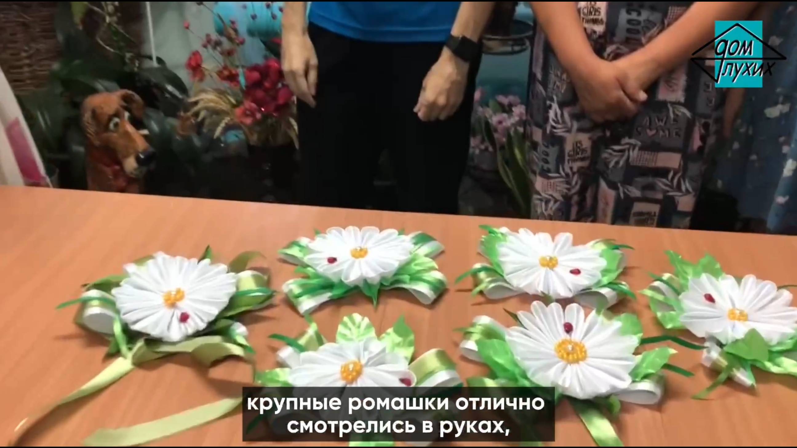 🟡 8 июля 2025 года в г. Ачинске Красноярского края прошёл мастер-класс по созданию ромашек из атласных лент, организованный сотрудниками «Дома глухих» ко Дню семьи, любви и верности. ❣️ Участники собирали лепестки из белых и зелёных лент, работали с ножницами, клеевым пистолетом и зажигалкой — каждый старался сделать свою ромашку особенной. 🍃🌼🍃 Готовые ромашки получились яркими и праздничными — их забрали домой, чтобы украсить шторы или порадовать близких приятным символом семейного праздника.