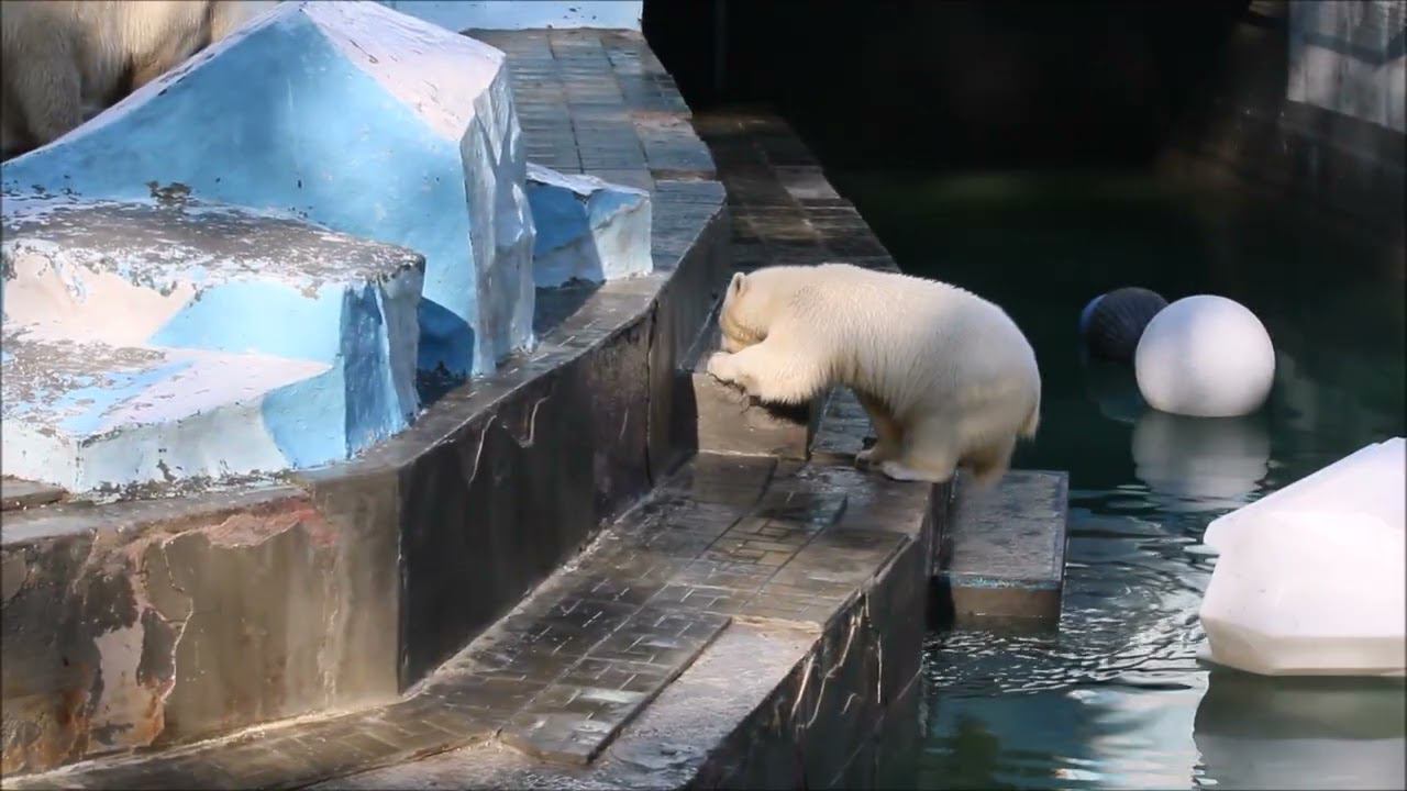 Герда родилась в Москве 20 ноября 2007 года. Её мама Симона, папа Врангель. В Новосибирск переехала 05.08.2008. В 2013 году у Герды и Кая родилась Шилка. В 2015 году она переехала в Японию. В 2015 году родился Ростик. 6 декабря 2018 года он переехал в Китай. В 2018 году родились Норди и Шайна. Данная пара молодых медведей находилась вне экспозиции зоопарка, поэтому посетители не могли их видеть. Передача молодых медведей в другой зоопарк не планируется, — ответили на запрос редакции в пресс-центре мэрии Новосибирска. Но Шайна 20 января 2024 года переехала в Ижевский зоопарк. Белые медведи одиночные животные. Как правило, миролюбивы по отношению друг к другу, но между самцами в брачный период случаются стычки. Взрослые самцы могут нападать на медвежат. Гон с марта по июнь. Продолжительность жизни — максимум 25—30 лет; в неволе рекорд долгожительства — 42 года. Вес очень крупных самцов в некоторых частях ареала 700 и даже 800 кг: есть данные о зверях весом до 1000 кг. Обычно вес меньше. Самки всегда не только меньше, но и значительно легче самцов. Так, самцы в восточной Гренландии в состоянии нормальной упитанности весят 400—450 кг, хорошо упитанные — до 500 кг, самки, даже очень сытые, здесь же редко весят больше 350—380 кг, т. е. их вес составляет около 75% веса самцов. Длина тела на 3-й день после рождения 28—32 см, средний вес — около 755 г (650—840 г). На 26-й день длина тела увеличивается незначительно — до 35—38 см, а вес возрастает до 1125—1275 г. В возрасте 60 дней самцы весят около 7 кг, самки — около 6 кг при длине тела у первых 58—60 см, у вторых 54—58 см. В возрасте 4 месяца медвежата достигают веса 22—23 кг, в 6-месячном возрасте при длине около 110 см — 40—43 кг, в 8-месячном — 58—62 кг. Длина тела в возрасте с 6 до 9 месяцев нарастает по 6—7 см в месяц. Во время зимнего сна рост почти прекращается. В зоопарке медведей кормят утром морской рыбой, хлеб с рыбьим жиром внутри, морковь, яблоки, морская капуста, яйцо дают сырое. Медвежат подкармливают молоком из соски. На ужин мясо (говядина, конина, куры или индейка). Летом и осенью арбузы, дыни, ранетки, кабачки, тыквы, огурцы. Когда показательное кормление летом бросают живую рыбу. Медвежата с медведицей находятся до 2-х лет. 16 декабря 2022 года Герда родила 2-х медвежат. И это две девочки! Имена дали 25 июня. Медвежат зовут Стрелка и Белка. Обзор вольеров белых медведей https://www.youtube.com/watch?v=mAt_b7JD0B4&list=PLGvf0V-rAHxkpGKJaWIZIUxRKgKiqV3xZ&index=17&t=0s