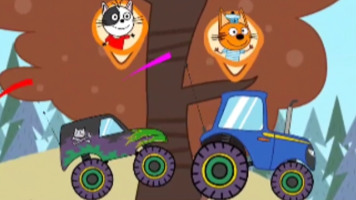 Три кота. Монстр трак. Гонки. Мультфильм игра