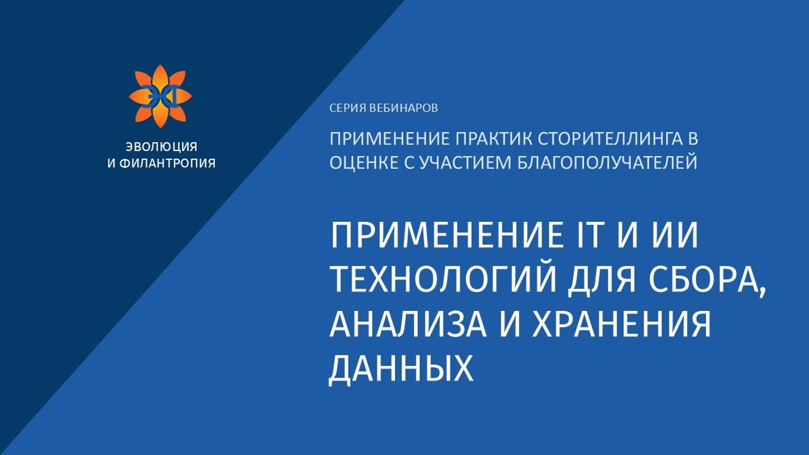 Вебинар «Применение IT и ИИ технологий для сбора, анализа и хранения данных» состоялся 13 октября 2023. Вебинар из серии "Сторителлинг для оценки программ" прошел в рамках проекта "Больше историй", который реализуется АНО "Эволюция и Филантропия" при поддержке Фонда президентских грантов.