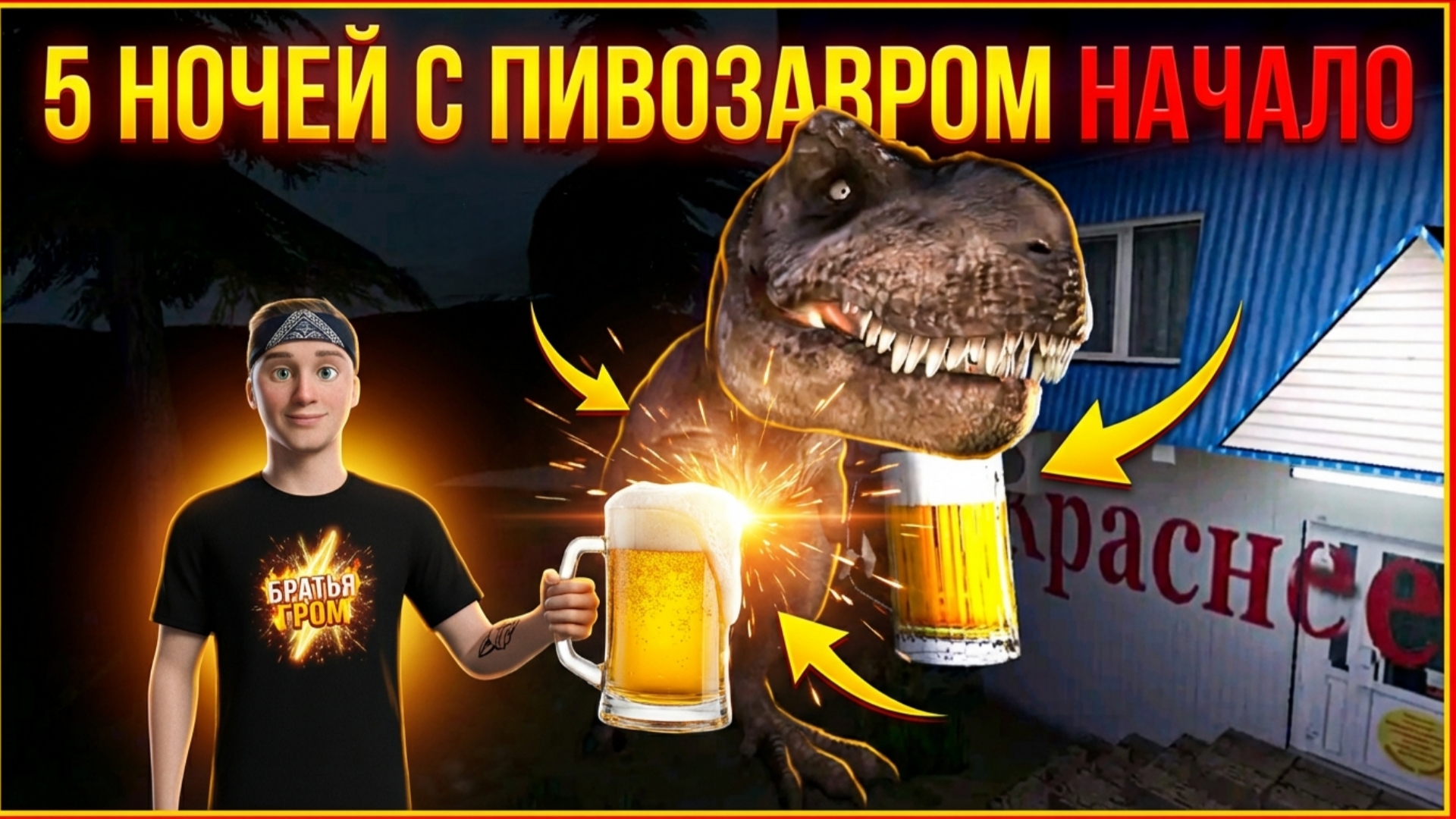 Ты скуф, который устраивается в магазине напитков охранником, однако в твоем городе появился злой и страшный пивозавр - расхититель КБшек, Магнитов и Пятерочек! Он с двумя руками вливает в себя пенный напиток и громко рычит. Ты - последняя надежда своего города, ведь все остальные магазины пали под натиском злого монстра! Приятного просмотра друзья. #БратьяГРОМ #5НОЧЕЙСПИВОЗАВРОМ #5NIGHTSATPIVOZAVR #пивозавр #5ночейспивозавром #пятьночейспивозавром #финалпивозавр #квасзавр #5ночейстимохой #братьягром #топыкатегорий Поддержать - http://www.donationalerts.com/c/oleg_chirikov_92 По всем вопросам VK - https://vk.com/o.thor Паблик ВКонтакте - https://vk.com/club226899857?from=groups ЮТУБ - https://www.youtube.com/channel/UCG48udXpv1wUzSuHsIshGMA Twitch - https://www.twitch.tv/thethunderbrothers2 Дзен - https://dzen.ru/id/6682f6ffbabc1246bdc3153c?share_to=link