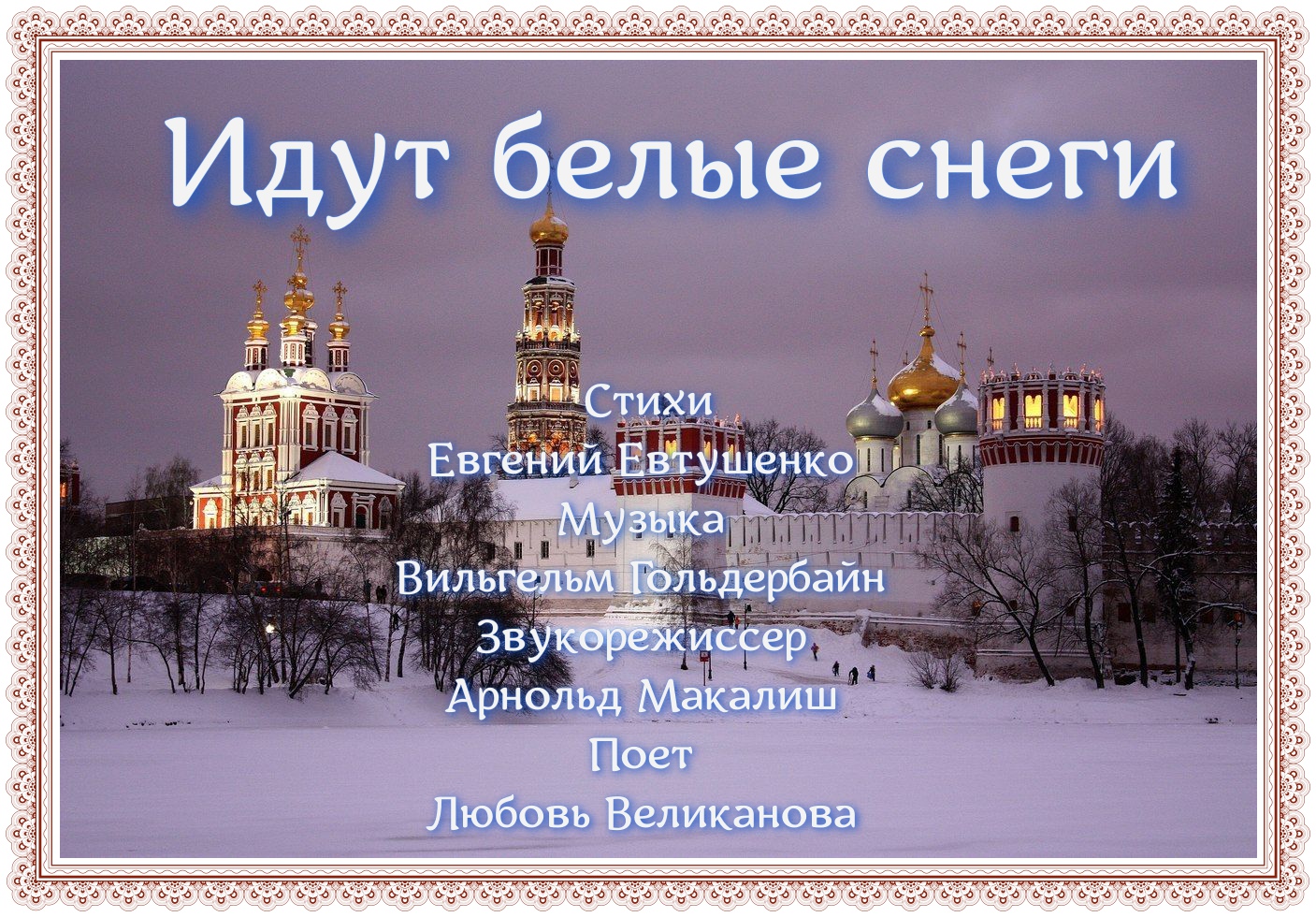 ИДУТ БЕЛЫЕ СНЕГИ... Ст. Е.Евтушенко,муз.В.Гольдербайн,вок.Л.Великанова,зв.А.Макалиш,мон.В.Зубкова