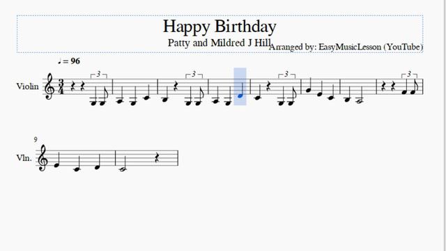 Violin Sheet Music: How to play Happy Birthday by Patty and Mildred J Hill