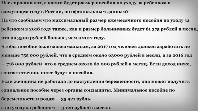 Размер пособия по уходу за ребенком в 2018 году