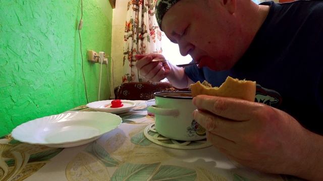 Борщ из кастрюли, свекла и кулебяка с печенкой. #мукбанг #асмр