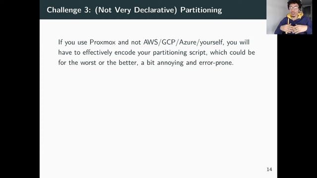 NixOps for Proxmox - Ryan Lahfa 2020-10-17 https://cfp.nixcon.org/nixcon2020/talk/7RKBTE/ We will explore how to build and manage dozens of NixOS virtual machines in a Proxmox cluster using NixOps in a declarative fashion. Managing a fleet of NixOS machines can be achieved using supported backends of NixOps or other tools (Disnix, Krops, Morph, etc.), but most of them do not solve the "initialization" of your host, e.g. installing NixOS, starting the node, except if you're using a major cloud provider like AWS for example. If you're running your own mini-datacenter and want to manage the whole infrastructure end to end, using the Nix language, it would prove quite difficult. nixops-proxmox is one step towards a NixOS-heavy datacenter, e.g. storage backends, PCI devices, and network adapters can be considered as resources, and ultimately all of them can be controlled from a "reproducible" and centralized Nix expression. This talk will feature how to use IPv6 (!) inside a NixOps plugin, especially useful for IPv6-only networks.