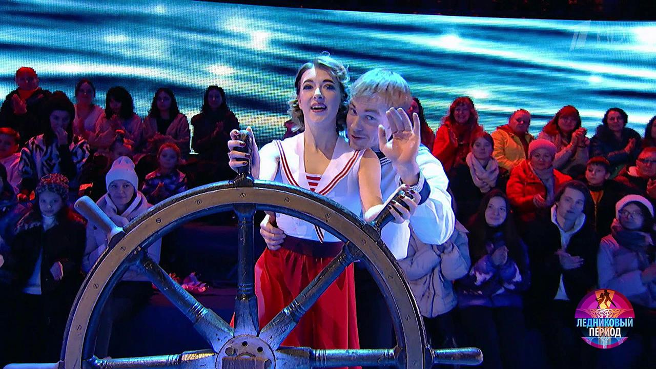 На льду — олимпийская чемпионка, заслуженный мастер спорта Екатерина Боброва и актер Макар Запорожский. Пара выступает под композицию «Яблочко» в исполнении Академического Ансамбля песни и пляски Российской Армии имени А.В. Александрова.