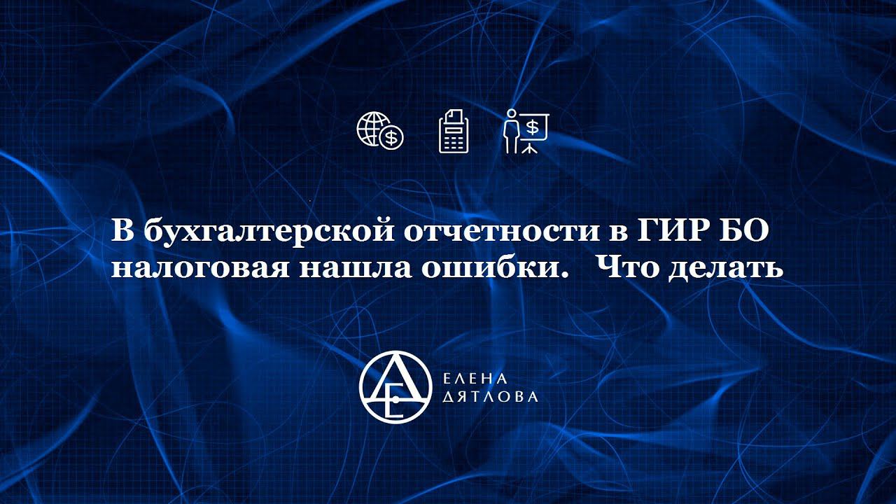 Как налоговая проверяет нашу бухгалтерскую отчетность переданную в ГИР БО? В июле многие компании получили уведомления от ИФНС о выявленных ошибках в отчетности. В основном выявляются арифметические ошибки, ошибки в заполнении форм отчетности. Что делать компаниям с таким уведомлением, надо ли на него реагировать? Лектор Елена Дятлова утверждает: "Надо". Как минимум, бухгалтерская отчетность с ошибками в ГИР БО размещена не будет. В первую очередь неразмещение влияет на репутацию компании, но только лишь это? Елена Дятлова рассказывает о всех возможных последствиях неразмещения бухгалтерской отчетности в ГИР БО. Дятлова Е.М. автор более 400 оригинальных семинаров и вебинаров за 18 лет (в тч специализированных для особых категорий налогоплательщиков), статей по вопросам учета и налогообложения; победитель конкурса «Лучший аудитор России», председатель комитета по экономике РСПП по Ленинградской области.
