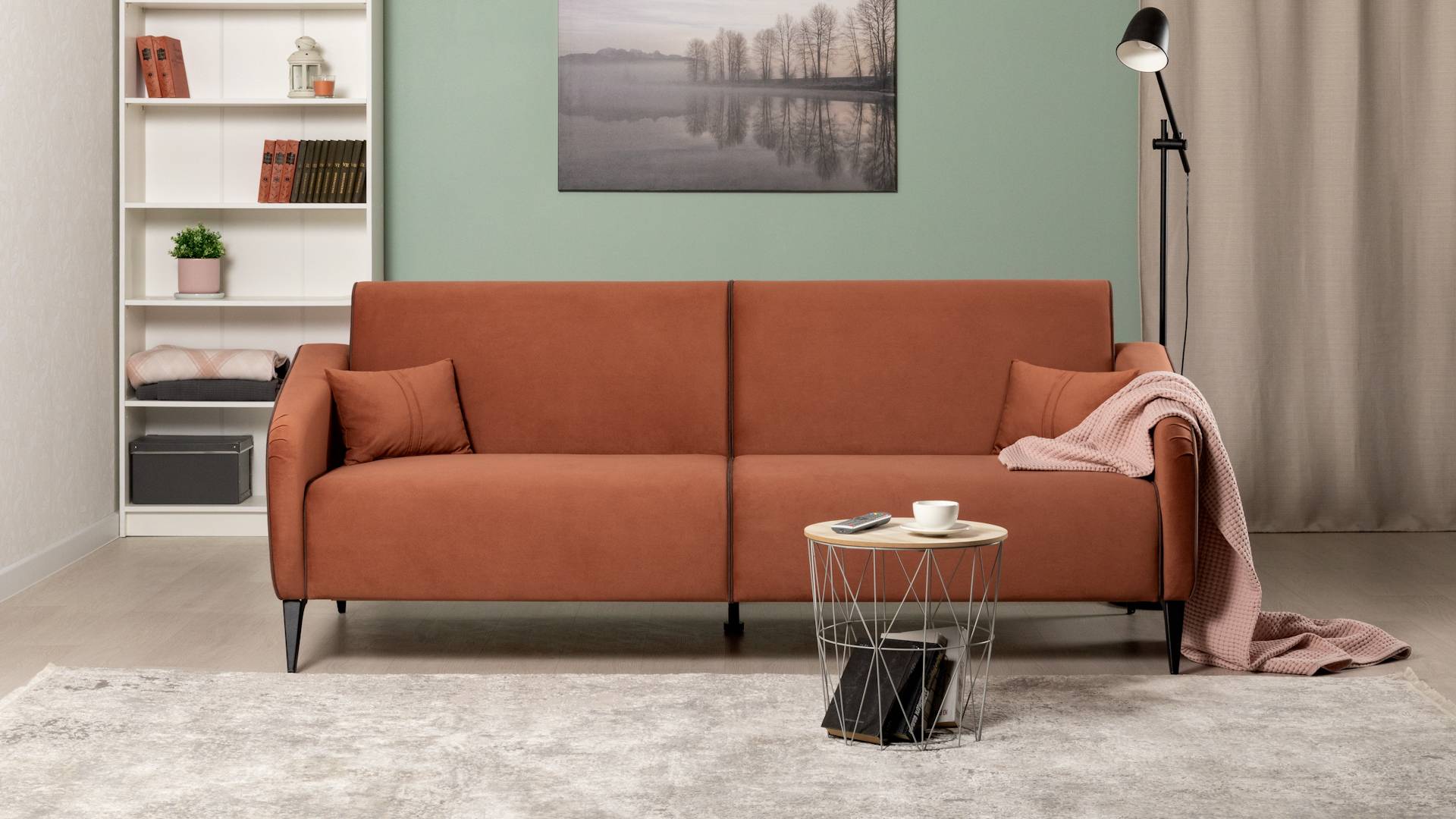 Описание преимуществ модели и ткани: Стильный компактный диван-книжка для современных интерьеров. Дополнит гостиную, сэкономит место в гостевой, сделает уютным и функциональным кабинет или офис. Velutto (велюр): Состав: полиэстер (PES) 100% Количество циклов истирания: более 60 000 Основные преимущества: высокая износостойкость легкая чистка средневыраженный «пальчиковый эффект» Габариты сложенный (Д x Г х В, мм): 2210 x 910 x 860 разложенный (Д x Г х В, мм): 2210 x 1130 x 690 спальное место (Д x Ш, мм): 1920 x 1130 высота посадки (мм): 460 глубина сиденья (мм): 590 высота спинки (мм): 450 высота подлокотника от сиденья (мм): 150-220 максимально допустимая нагрузка: 100 кг на одно посадочное место Примечание Механизм трансформации Книжка Бельевой ящик есть с перегородкой по центру (2 отделения) размер отделения (Д x Ш, мм): 740 x 885 x 120 Варианты исполнения 5 артикулов сочетание тканей только как на фото Материалы основная ткань: Velutto (велюр) выполняется в тканях: Velutto 55 (терракотовый)/Velutto 36 (шоколадный) каркас: фанера деревянный брус ДСП ДВП основание сиденья: ППУ на блоке плоских пружин декоративные подушки, шт: 2 наполнитель подушек: крошка ППУ и полиэфирное волокно «шарики» материал опор: металл цвет опор: черный высота опор (мм): 165 Декор Спинка и сиденье разделяются пополам двойным кантом по центру и одинарным по краям сидения, для придания одной единой формы. Подлокотники с изгибом на лицевой стороне и мягкими закругленным углом со складками, с выраженным контрастным ровным кантом по внешнему контуру изделия и изогнутой линией канта. Назначение в гостиную в молодежную в гостевую комнату в кабинет в офис Требуется ли сборка да Упаковка количество коробок, шт: 2 общий вес с упаковкой, кг: 58,1