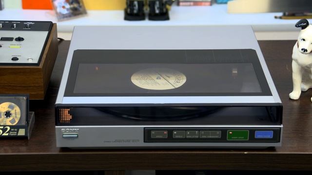 SONY PS-FL77 ¥49,800(1983年発売) バイオトレーサーを搭載したリニアトラッキング方式フルオートプレイヤー。 電子制御のトーンアームであるバイオトレーサーを採用しており、低域での共振を抑え、混変調歪やクロストークを改善しています。さらにレコードのソリや偏芯にも優れた追随性を得ています。 リニアトラッキング方式を採用しており、速度センサーにより微妙なアームのトラッキングエラーを検出し、駆動用モーターにフィードバックすることにより、オフセットトーンアームに比べ、トラッキングエラーを10分の1まで低減しています。 回転系にはリニアBSLモーターを採用しています。 スタートボタン一つで、ターンテーブル部が収納され演奏が始まるフルオート機構を採用しています。 ターンテーブル部を引出してのマニュアル操作も可能です。 リピート動作はアームがレスト位置まで戻らずにレコード盤の頭からすぐに演奏を再開するクイックリピート機構を採用しています。 自動的にレコードサイズを選択し、トーンアームが正確にリードインする光電子ディスクサイズセレクターを採用しています。 また、レコード盤をセットしないでスタートボタンを押してもトーンアームは降下せず、針先を痛めない安全機構を搭載しています。 針先が降りきるまで出力をカットし、レコード盤と針先が接触した際のノイズを無くすミューティング機構を搭載しています。 ターンテーブル部のローディング中に、障害物で動作が妨害された場合、約10秒停止した後、元の位置に戻る安全設計が採用されています。 カートリッジ交換が容易な統一規格のプラグイン式シェルコネクターを採用しています。 また、カートリッジには統一規格に基いた自重、針圧、シェルプラグ設計のハイコンプライアンスMM型カートリッジのXL-250Gを装備しています。 キャビネットには、強度が高く十分な内部損失を持つSBMC材を採用しています。 パワースイッチ以外の全ての操作はシートキースイッチによるオールフェザータッチオペレーションを採用しています。 別売りのシンクロリモコンによってソニーのカセットデッキとのシンクロプレイが可能です。 型式 D.D.フルオートプレイヤーシステム -ターンテーブル部- ターンテーブル 29cmアルミダイキャスト ワウ・フラッター 0.03%WRMS(回転系) 起動特性 2/3回転以内(33 1/3rpm時) SN比 75dB(DIN-B) -トーンアーム部- トーンアーム リニアトラッキングバイオトレーサー(電子制御トーンアーム) 有効長 100mm 全長 170mm 針圧 1.25g固定 -カートリッジ部- カートリッジ MM型(XL-250G、プラグインコネクタータイプ) 周波数特性 20Hz~20kHz 出力電圧 5mV 針 0.6mil円形ダイヤモンド 自重 6.0g 交換針 ND-250G(¥3,500) -総合- 外形寸法 幅355x高さ90x奥行370mm 重量 7.0kg 付属 45回転アダプター カートリッジ(XL-250G)