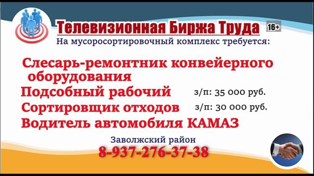 ТЕЛЕВИЗИОННАЯ БИРЖА ТРУДА – это слайдовая программа по трудоустройству, где голосом озвучивается ВАКАНСИЯ и ТЕЛЕФОН прямого работодателя, выходит на телеканале РОССИЯ-24 в Ульяновске и Ульяновской области