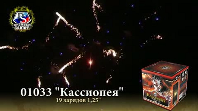 Артикул: 01033 Кол-во зарядов: 19 шт. Калибр: 1.2 " Время работы: 25 с. Высота подъёма: 30 м. Эффект: Красные звезды раскрываются большими золотыми кокосами в зеленых жемчужинах, веерный W залп синих звезд раскрывается золотыми кокосами в синих жемчужинах. В финале одновременный залп синих звезд раскрывается золотыми мерцающими шипящими коронами.