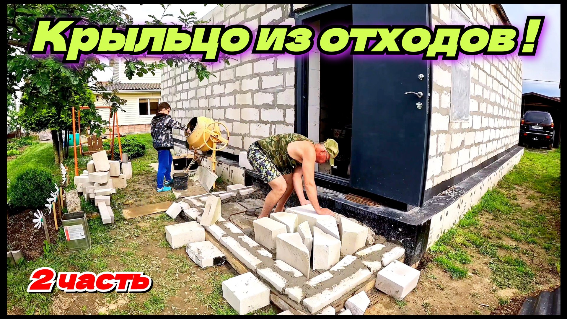 Делаю крыльцо с лестницей из отходов. Жизнь в деревне.