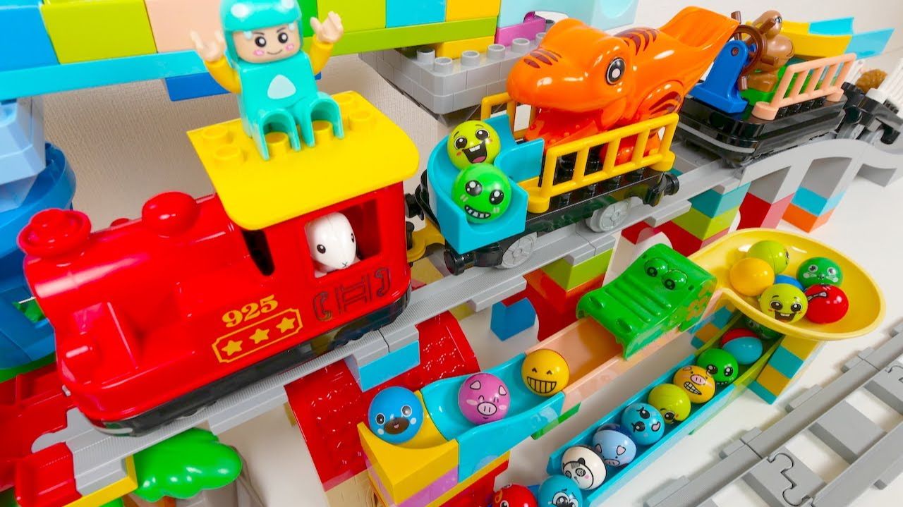 СТРОИМ ГОРКУ ДЛЯ ШАРИКОВ С ПАРОВОЗИКОМ КАТАЕМ ШАРИКИ ДЛЯ ДЕТЕЙ ДЕТСКИЙ КАНАЛ ИГРАЛКИ-ЗАЛИПАЛКИ
