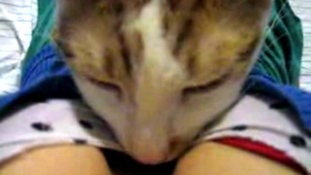 Кот любит нюхать декольте и мять живот