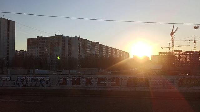 Восход солнца в Москве вид из окна поезда перегон Бескудниково - Лианозово МЦД-1 D1