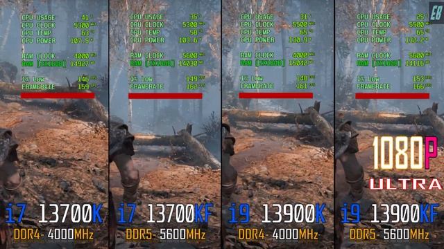 INTEL i7 13700K (DDR4) vs INTEL i7 13700KF (DDR5) vs INTEL i9 13900K (DDR4) vs INTEL i9 13900KF (DDR5) // DDR4 vs DDR5 // PC GAMES BENCHMARK TEST // 1080P || #i713700k #i913900k #rtx3090 SYSTEM :- OS Windows 10 pro CPU INTEL i7 13700K MOBO MSI MAG Z790 TOMAHAWK - DDR4 CPU INTEL i7 13700KF MOBO Asus ROG Strix Z790 E Gaming - DDR5 CPU INTEL i9 13900K MOBO MSI MAG Z790 TOMAHAWK - DDR4 CPU INTEL i9 13900KF MOBO Asus ROG Strix Z790 E Gaming - DDR5 COOLER Corsair ICUE H150I ELITE GPU Asus TUF Gaming RTX 4090 24GB SSD Samsung 980 PRO 2TB PCIe 4.0 NVMe M.2 HDD WD Blue 4TB Desktop Hard Disk Drive PSU Corsair HX1500i 1500 Watt 80 Plus Platinum RAM G.SKILL TRIDENT Z 32GB DDR4 4000MHz RAM Corsair Dominator 32GB DDR5 5600MHz Теги: benchmark test,fps test,intel vs amd,amd vs nvidia,radeon vs geforce,1080p gameplay,1080p benchmark,ryzen,1080p gaming,1440p gaming,1080p gaming benchmark,1440p gaming benchmark,explore benchmark,benchmark,ddr4 vs ddr5,ddr5 vs ddr4,13700k ddr4,13900k ddr4,13900k ddr5,rtx 4090,4090,522.25,intel i9 13900k,i9 13900k,13900k,intel i9 13900kf,i9 13900kf,13900kf,intel i7 13700k,13700k,i7 13700k,intel i7 13700kf,i7 13700kf,13700kf