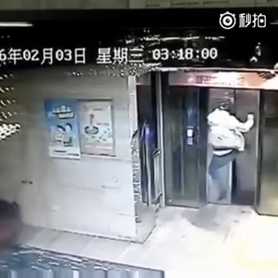 В Китае странный молодой человек 3 февраля 2016 года сначала с разбега выбил дверь лифта, а затем провалился в шахту лифта, пытаясь облокатиться на выбитую дверь.
