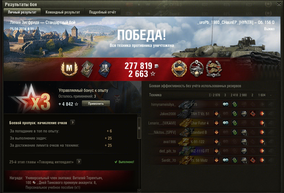 ЛИНИЯ ЗИГФРИДА МАСТЕР на Объект 156 О ОПЫТ: 1614 СУММАРНЫЙ УРОН: 7000 медаль ПОДДЕРЖКА