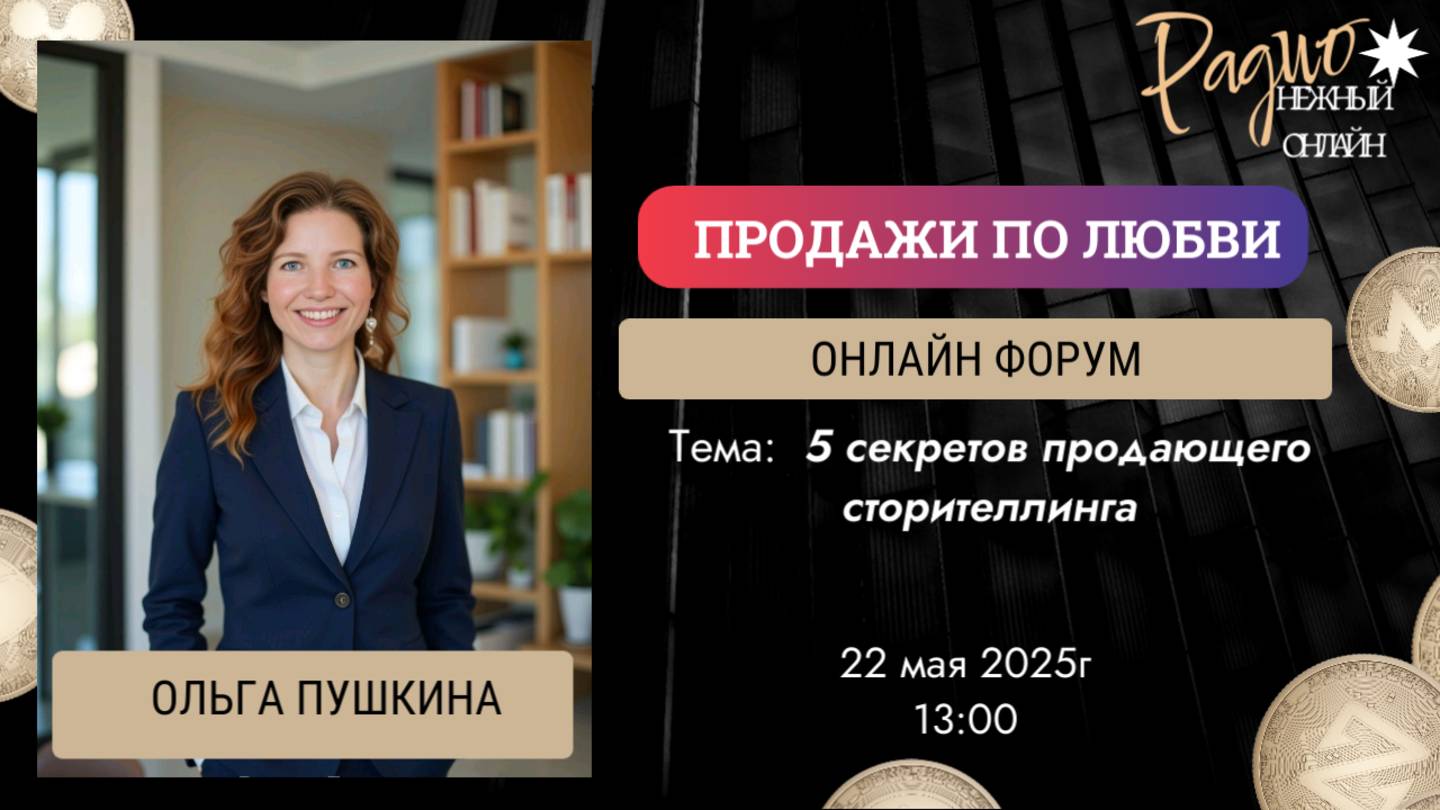 "5 секретов продающего сторителлинга" ©️ Ольга Пушкина (https://t.me/talking_magnetism) - редактор радио "Нежный онлайн", эксперт по влиянию и разговорному магнетизму, тренер по проявленности и публичным выступлениям. _______________________________________ 🎙Если вы хотите стать спикером радио, попасть на подкаст, пишите 👉 сюда (https://t.me/m/sApQQFV0ZDgy)