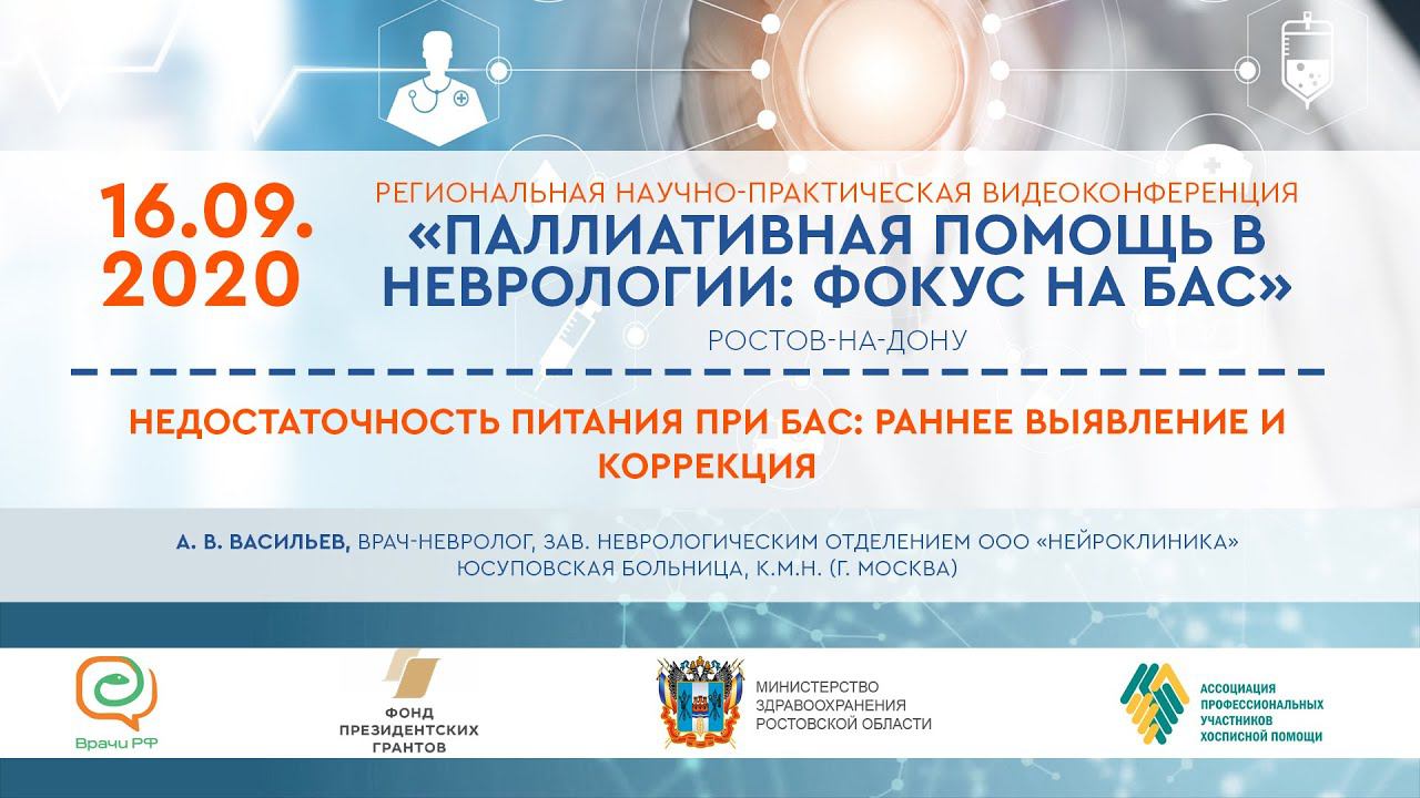 Региональная научно-практическая видеоконференция «Паллиативная помощь в неврологии: фокус на боковом амиотрофическом склерозе" 16–17 сентября 2020 | Ростов-на-Дону http://als-info.ru/palliativnaya-pomoshh-v-nevrologii-fokus-na-bas-rostov-na-donu/