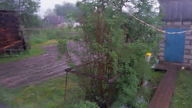 Прошёл хороший ливень и весь огород залило. Лето. Июнь. Гроза.