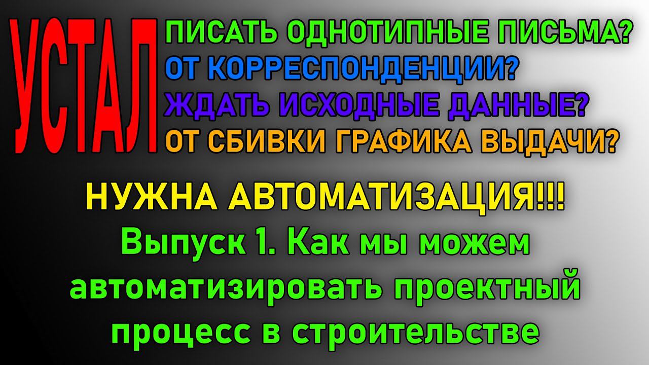 Первый выпуск из серии видео про наш новый проект, призванный автоматизировать все рутинные операции в работе главного инженера проекта, проектировщиков, экспертизы и заказчика. А также систематизировать весь процесс согласования и выдачи исходных данных и проектной документации для максимального ускорения процесса проектирования. Обсудить систему можно в чате: https://t.me/GIPkurs/9791 Для тех, кого интересует более глубокое изучение расчетов и возможность освоить самостоятельное проектирование конструкций и зданий, рекомендуем наши курсы. Для тех, кто хочет руководить процессом проектирования: курс "ГИП - главный инженер проектов". Проводит курс технический директор ведущего проектного института города: https://pro-z.ru/gip Для тех, кто хочет освоить проектирование стальных конструкций и выполнять раздел КМ (конструкции металлические): курс "Проектирование стального каркаса склада": https://www.pro-z.ru/steelsklad Для тех, кто хочет узнать основы расчета и проектирования фундаментов: курс "Проектирование фундаментов": https://www.pro-z.ru/foundation Подписка на VIP-канал для проектировщиков, где собраны все наши курсы по конструкция одновременно: https://pro-z.ru/vip Ну а если вы хотите организовать собственную проектную компанию, то мы также рассказываем все нюансы и сложности этого процесса в курсе "Как открыть проектную компанию пошагово": https://www.pro-z.ru/project-company ️Хотите научиться делать такие же 3D-анимации и моделирование, проходи на наш канал на Boosty, мы там обучаем этому: https://boosty.to/pro-z ✏️Также рекомендуем (если вы Заказчик и вам нужен проект) наш Каталог НАДЕЖНЫХ ПРОЕКТНЫХ КОМПАНИЙ: Каталог (по городам России) проверенных лично нашими специалистами надежных проектных, строительных, инженерных, изыскательских компаний, а также компаний поставщиков стройматериалов и инженерного оборудования: https://www.pro-z.ru/catalogfirm В каталоге вы можете подобрать надежного подрядчика или поставщика в любом городе России. Если вы сами подрядчик или поставщик и хотите попасть в каталог, пишите на почту you-engineer@bk.ru и вам вышлют список документов и требований для попадания в каталог. Места в каталоге ограничены и некоторые города уже могут быть недоступны для размещения. Успейте разместиться⌛, пока места в вашем городе есть! Подробнее про каталог смотрите наше видео: https://youtu.be/GYaJF9k77FU Наш самый большой (в РФ) Телеграм-канал по проектированию: https://t.me/prozru Наш чат для ГИПов, проектировщиков и проектных компаний, а также поставщиков: https://t.me/GIPkurs Наша группа ВКонтакте: https://vk.com/everyplaceprojects Наш канал на Дзен: https://dzen.ru/proz ✅Наш основной сайт: https://www.pro-z.ru/ Наша почта для предложений по сотрудничеству: pro-z69@bk.ru Полезные ссылки: Получите дебетовую карту и бонус от лучшего банка, которым мы сами пользуемся: https://tinkoff.ru/baf/3Mgl6bKWCtI Хотите, чтобы автор делал больше полезных видео? Можете делать донаты на развитие канала: https://boosty.to/pro-z/purchase/31389?ssource=DIRECT&share=subscription_link Примеры наших проектов: Как мы проектировали большой объект на вечной мерзлоте: https://youtu.be/47wji4lLkgA Проект большого промышленного здания (судостроительная верфь): https://youtu.be/y8NR1I0wh94 Расчеты на прогрессирующее обрушение (большого промздания): https://youtu.be/ryuoA-EJxME