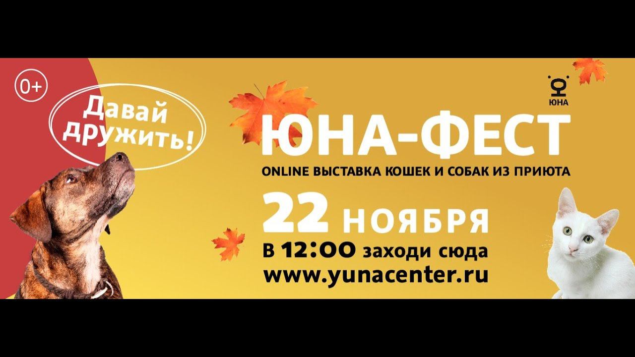 Впервые "Юна-Фест" пройдет онлайн! По традиции, сложившейся на всех выставках «Юна-Фест», мероприятие не ограничится только знакомством с подопечными Центра. Параллельно с основной трансляцией будут проходить онлайн мастер-классы для детей и взрослых: - урок для школьников «Юна-Класс», - викторина для детей «Мы-твои друзья» с призами от Purina - лекция от зоопсихолога на тему адаптации животного к дому - мастер-класс от кинолога "Как научить собаку командам" также у вас будет возможность принять участие в розыгрыше призов от партнеров. И самое главное вы увидите закулисье Центра “Юна” и наших животных. Возможно именно вы встретите лохматого друга, которого давно искали.