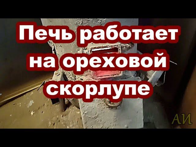 Бункерная ракета печь работает на ореховой скорлупе.
