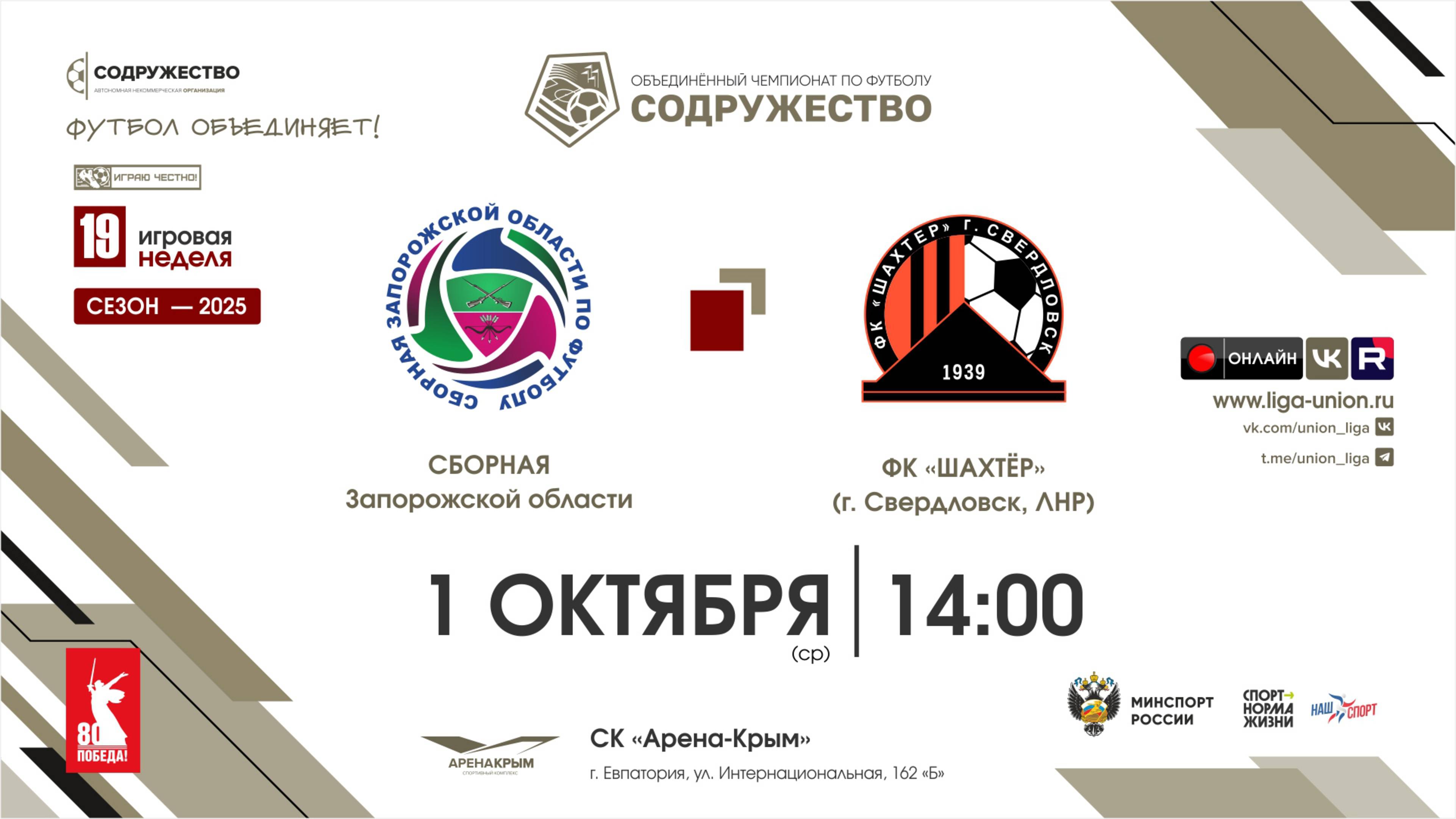 19 неделя (2025) | Сборная Запорожской области - ФК "Шахтёр" (Свердловск, ДНР) | 01.10.2025