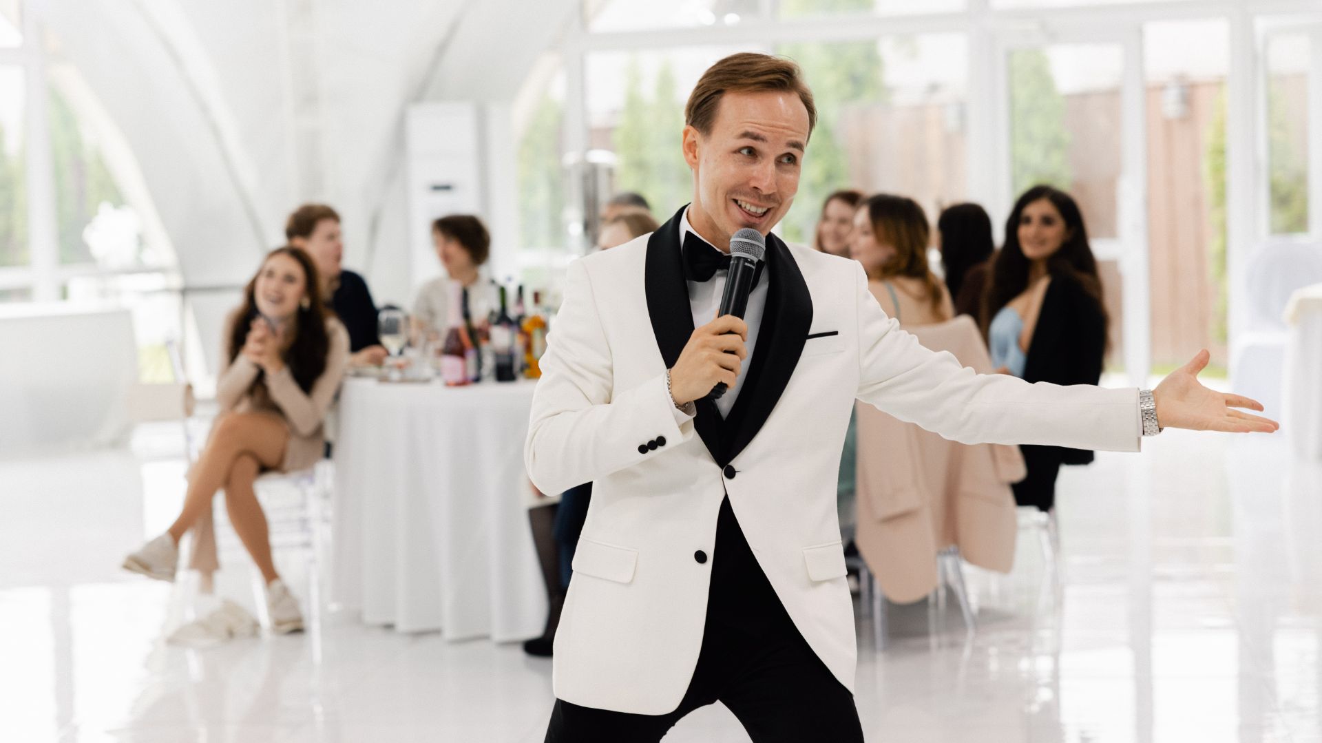 Для профессионального ведущего не требуются быстрые перебивки, короткие кадры. Снимая даже одним кадром - будет интересно наблюдать за его работой!