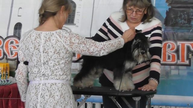 Цвергшнауцер окрас чёрный с серебром, видео с выставки собак
