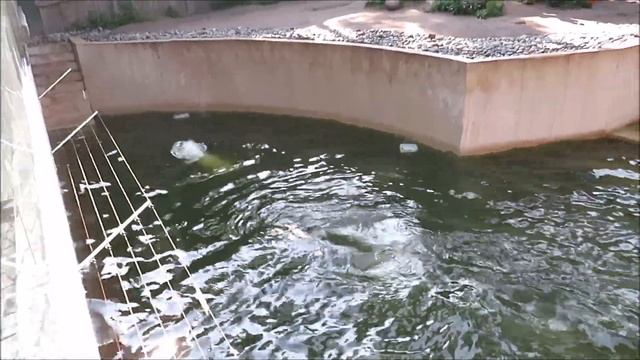 Стрелка пытается прыгнуть в воду, но не решается, а Белка плавает и играет 02.07.2025