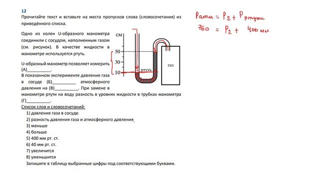 9 кл дз тест сооб сосуды задача 12