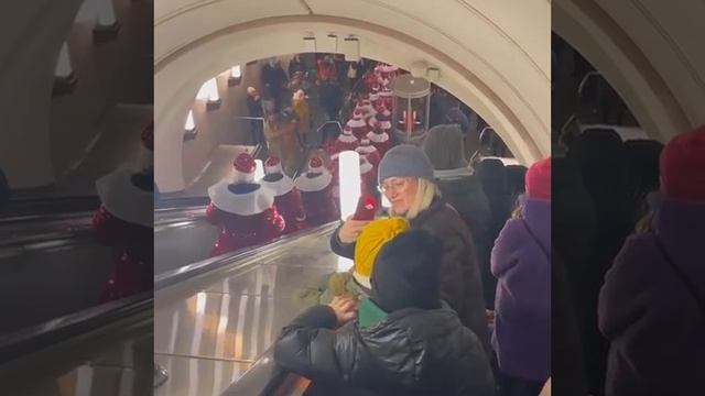 В метро толпа Дедов Морозов раздарила пассажирам подарки