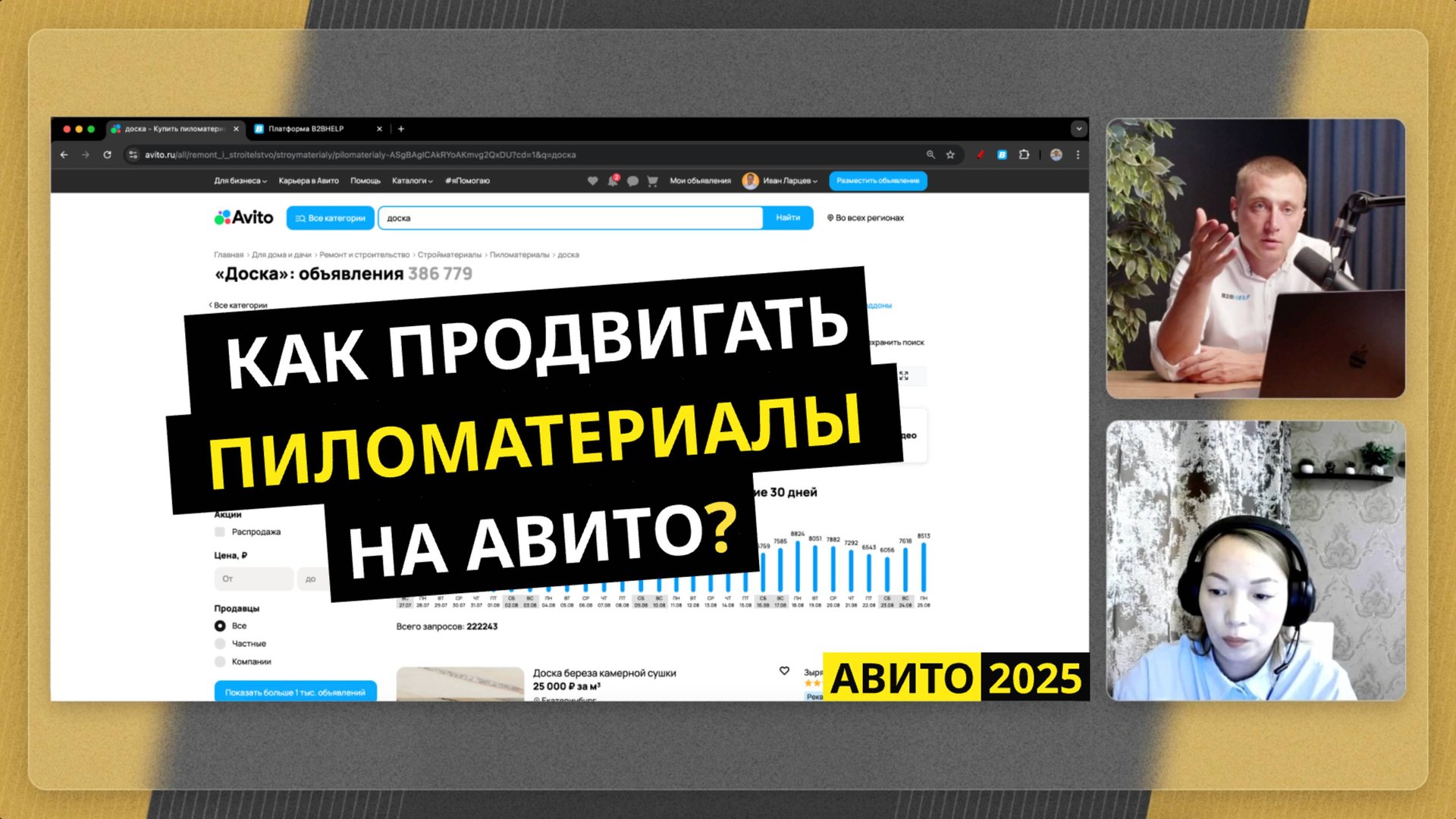 В этом выпуске разбираем, как стабильно получать заявки на пиломатериалы через Авито. Гость — Маргарита, авитолог/маркетолог с 3-летним опытом, 50+ запущенных проектов и ~60 млн ₽ оборотки, полученной для клиентов за 2,5 года. Поговорили о спросе, позициях в выдаче, бюджете, масспостинге, перепубликации и том, как не словить блокировки. 🔥 Подписывайтесь на канал, чтобы не пропустить новые экспертные вебинары по Авито. ✍️ Пишите свои вопросы в комментариях — ответим всем. #Авито #Пиломатериалы #Доска #Брус #Стройматериалы #Маркетинг #Авитолог #МассПостинг #Вологда #B2BHelp #БидМенеджер #Перепубликация Свернуть