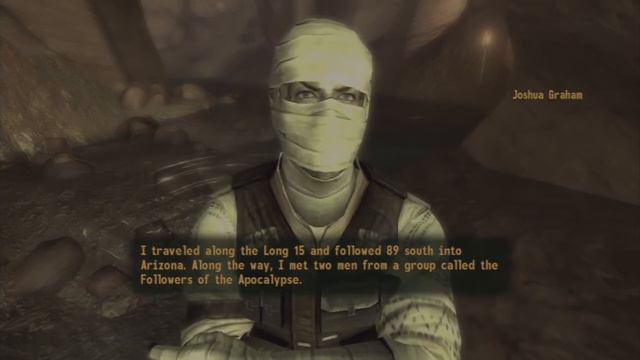 Joshua Graham is one of my favorite characters from Fallout: New Vegas. This is a video with most of his conversations and the Broken Hearts DLC ending itself. Enjoy!