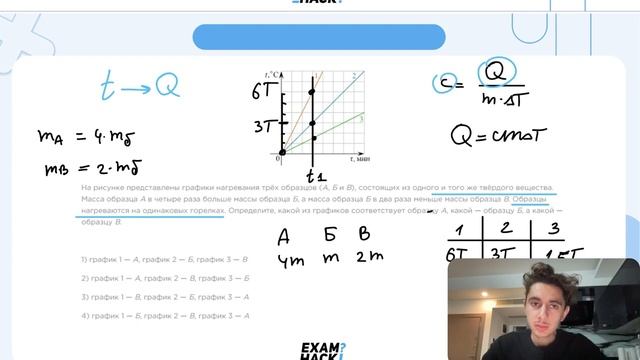 На рисунке представлены графики нагревания трёх образцов (А, Б и В), состоящих из одного и - №25530
