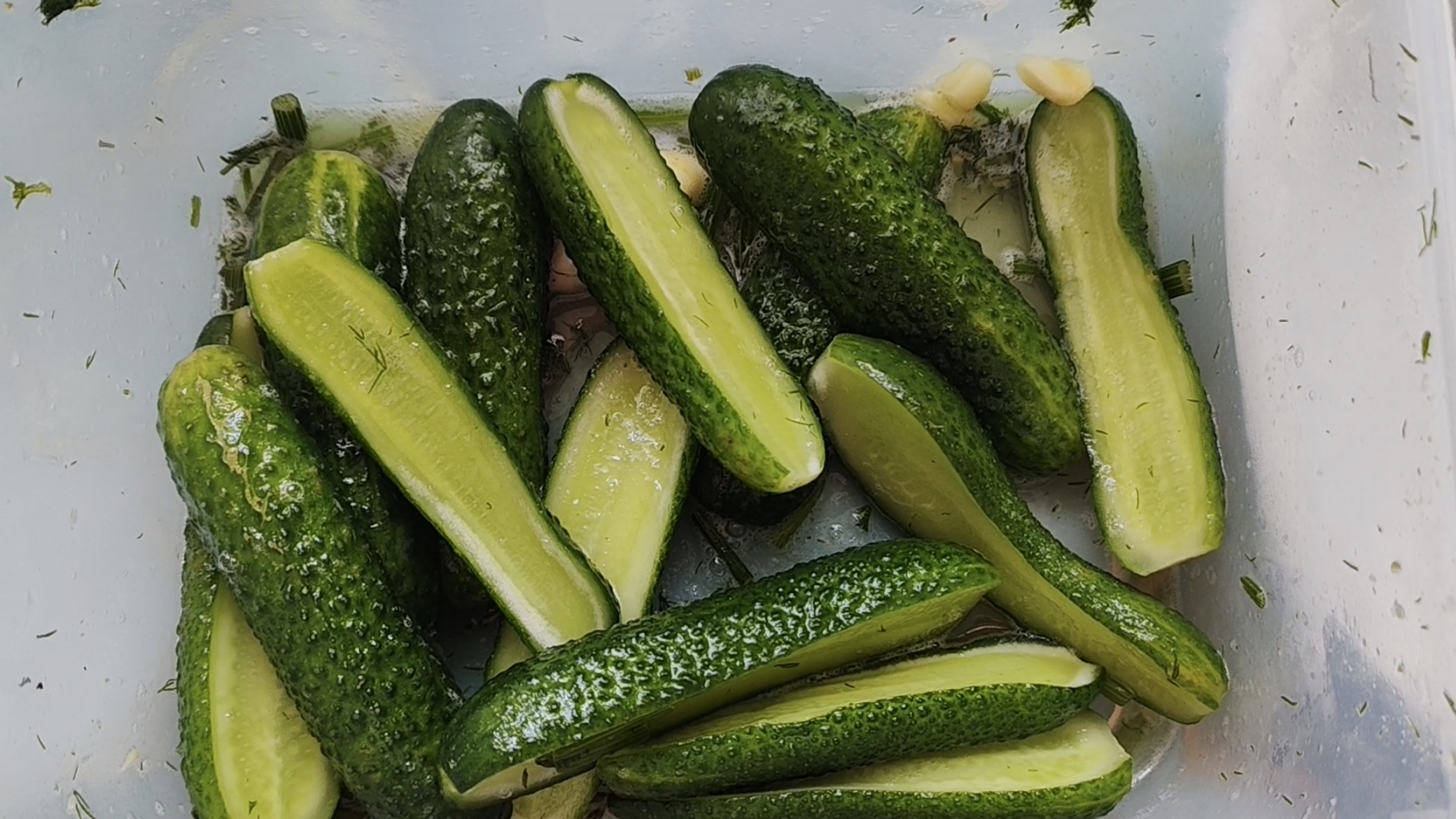 Малосольные огурцы быстрым способом в контейнере