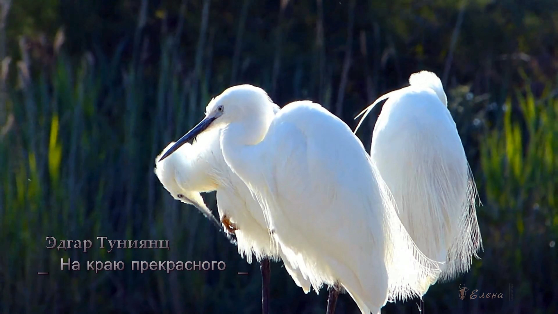 ***** Я сейчас ещё глубже ушла в своём понимании бытия... Мы действительно здесь совсем недолгое время. Умению наслаждаться жизнью, как она есть, иногда учимся до старости. То, что сейчас в моменте – сама жизнь – часто остаётся за пеленой переживаний о завтра и сожалений о вчера. В моей жизни сейчас вообще ничего нигде не понятно ... но я поняла, что просто хочу ЖИТЬ. Просто быть: дышать, видеть, слышать ... Так благодарна за новую весну, пробуждение природы, новое дыхание в жизнь. Всё будет. Всё, что самое главное, у меня уже есть. Элинушка Эдгар Туниянц "На краю прекрасного" Видеомонтаж Елены Короед Для просмотра и прослушивания с наилучшим изображением и звуком выставляем на шестеренке справа внизу настройку 1080р .................................................................................................................................