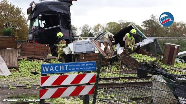 Поезд с 400 пассажирами врезался в фуру с грушами и разорвал её на части