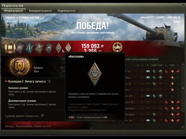 World of Tanks - Бой: Перевал Техника: AMX M4 mle. 54 Знак классности «Мастер»
