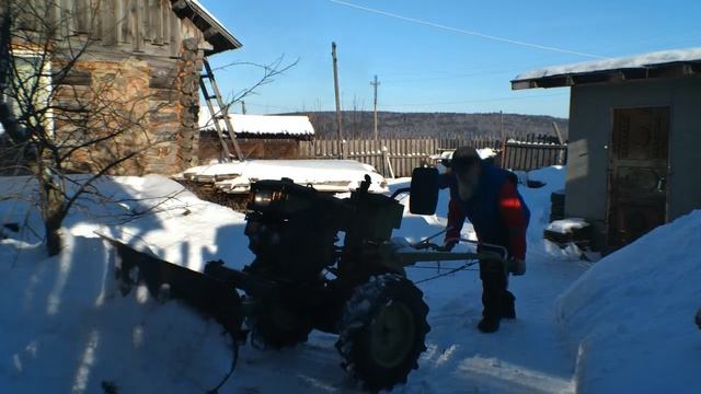 Завожу тяжелый дизельный мотоблок в -10.