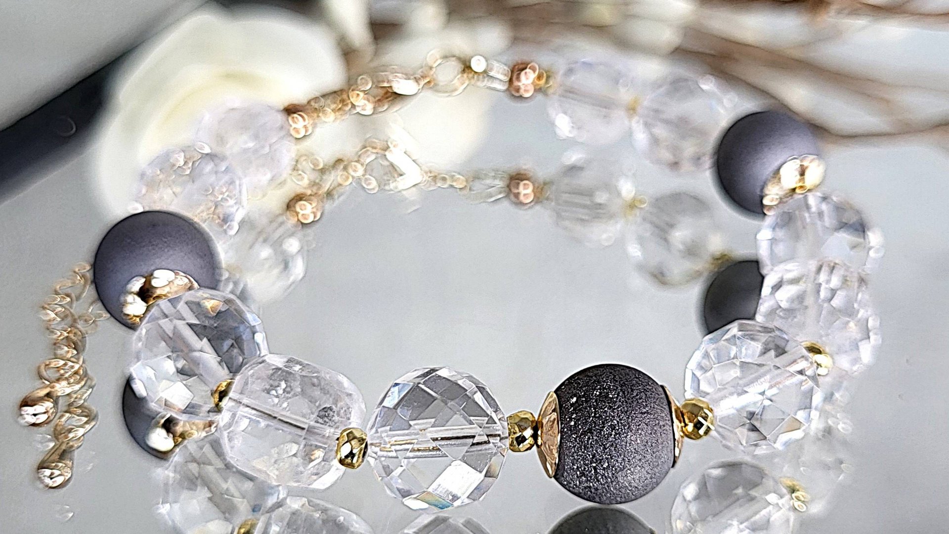 Браслет из горного хрусталя, агата с друзой