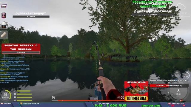 Поддержка донатом https://www.donationalerts.com/r/kalyamba11 Альтернативный донат https://new.donatepay.ru/@1032463 ТОП МЕСЯЦА ПОЛУЧАЕТ ЛЮБУЮ ВЕНГУ ИЗ МАГАЗИНА Если стрим лагает,смотри стрим на трово https://trovo.live/s/Kalyamba_na_Ribalke Мой ВК - https://vk.com/kalyantv НИК в игре kalyan11 НАШ ДИСКОРД СЕРВЕР https://discord.gg/mSbnTJK8TB Заказ водоема на 1 час - 500р ( весь стрим 2500р ) Модерка на канале 1200р ( каждая следующая на 100р больше) Озвучка доната на 40р,50р,100р,200р,300р,500р,1000р ✅Призы в рулетке "ЗОЛОТАЯ" ✔ ЗОЛОТО ✔ ПРЕМ ✔ КАТУШКИ РАПТОР 40, АЗИМУТ 10000, СИЛЬВЕР 80, ТАЙГА с 30 ✔ ПАЛКИ ПИЛКЕРНАЯ, ДОНКА МОРСКИЕ, ✔ РОД ПОД, СТУЛЬЯ ✅Призы в рулетке СТАНДАРТ : ✔ катушка "РАПТОР 40" ✔ катушка "АЗИМУТ 10000" ✔ катушка "ТАЙГА С30, С40," ✔ катушки 60 для медного ( ЭВИИ, НАТОРЫ, ГОЛДА, и тд) ✔ ПИЛКЕРНОЕ УДИЛИЩЕ КОРОЛЕВА ОКЕАНА ✔ Морское Донное удилище ✔ прем ( 3, 7, 30 дней) ✔ золото ( 1, 3, 5, 10, 20 ,50) ✔ билет на море ( 1, 3, 5 дней) ✔ голд наживка и др. ✅Призы в рулетке "СТАРТОВАЯ" ✔ катушка "silver80" ✔ катушка "БЕЛЫЙ КАЛИБР" ✔ катушка "Черный калибр" ✔ катушка "Протон" ✔ катушка "Нарга 6000" ✔ Набор Фидерист и спинингист ✔ Карповик Фортуна ✔ фидерные удилища ✔ прем, золото, алкашка, наживки и тд P.s Рулетка это не казино, а награда за поддержку стримера. Вечный ТОП ПОДДЕРЖКИ (11.05.2024) 1. Dimon_pokemonchik 119 784 2. Interceptor 75 508 3. Skreb79 71 261 4. une personne 68 619 5. Нарвал77 31 550