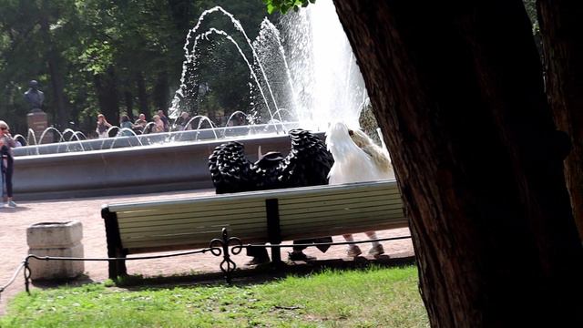 Ангелы и демоны на скамейке у фонтана рядом с Адмиралтейством. Воскресенье,16 июня 2024 г.