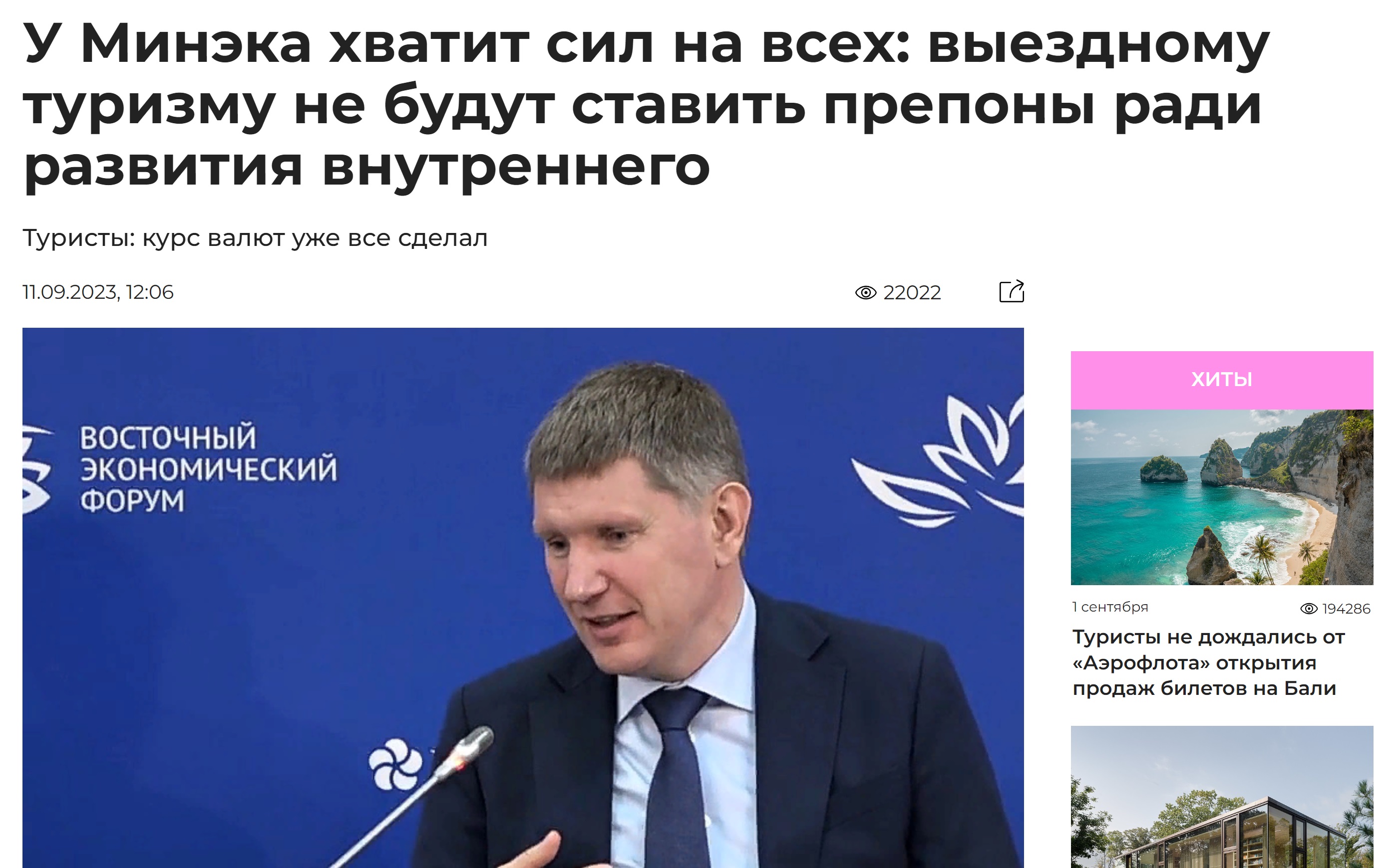 Новости туризма 11/09/2023 У Минэка хватит сил на всех: выездному туризму не будут мешать #туризм